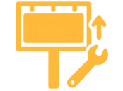 Profesionalus lauko reklamos įrengimas ir nukabinimas įvairiuose aukščiuose.